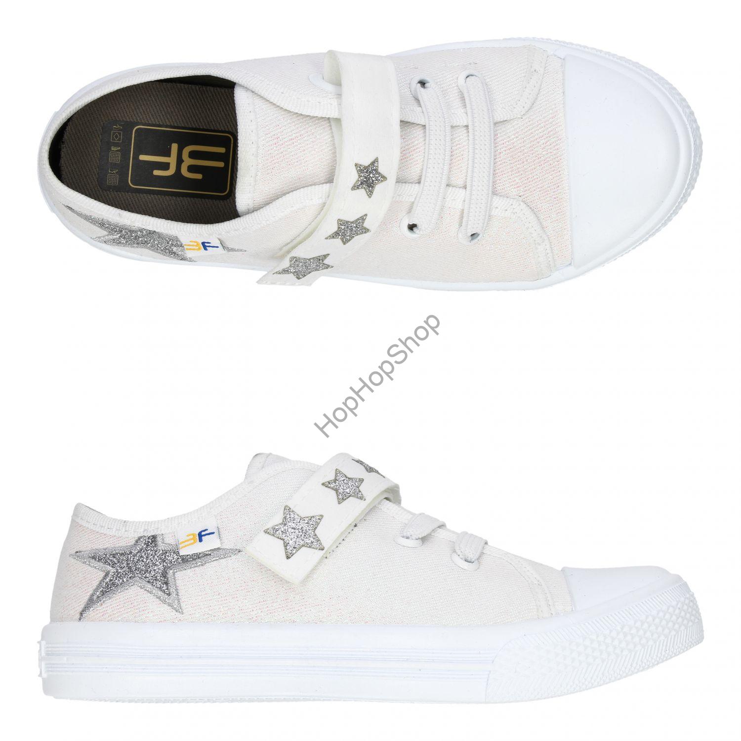 Pohodlné dívčí tenisky, plátěnky od výrobce 3F s gumovou tkaničkou a se zapínáním na suchý zip.