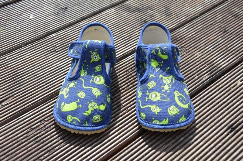 - Beda barefoot 060010/W bačkorky, chlapecké, modré, příšerky