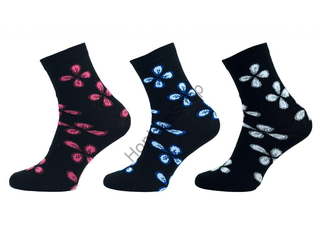 Novia Ladies Exklusive, dívčí / dámské ponožky, černé, květy, set 3 páryskladem119,00 Kč/ ks98,35 Kč bez DPH