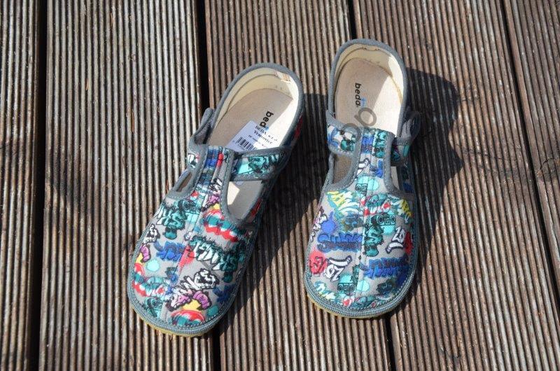 - Beda barefoot 060010/W/02 SLIM bačkorky, chlapecké, šedé, GRAFITTI